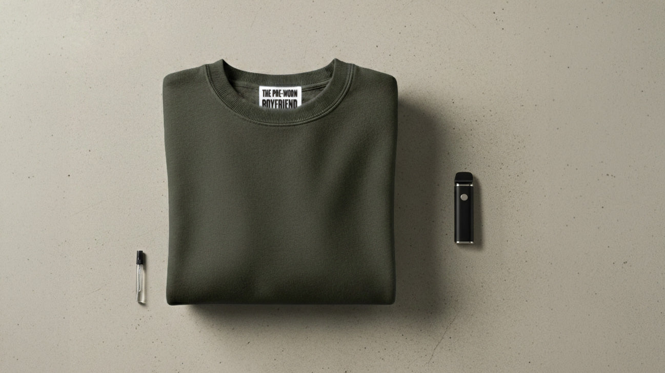 The boyfriend sweater is the relationship stripped down to the only part that was ever real — the physical feeling of closeness. Worn soft, oversized, and carrying the one thing he couldn't fake: how he smelled. Because scent is the strongest trigger of memory. One inhale and you're back on his couch, in his apartment, wrapped in his half-promise of something more.All the boyfriend. None of the baggage.