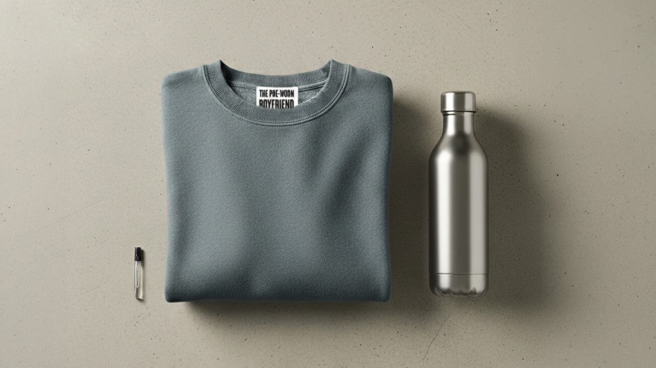 The boyfriend sweater is the relationship stripped down to the only part that was ever real — the physical feeling of closeness. Worn soft, oversized, and carrying the one thing he couldn't fake: how he smelled. Because scent is the strongest trigger of memory. One inhale and you're back on his couch, in his apartment, wrapped in his half-promise of something more.All the boyfriend. None of the baggage.