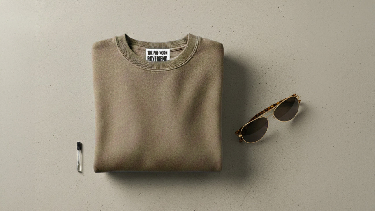 The boyfriend sweater is the relationship stripped down to the only part that was ever real — the physical feeling of closeness. Worn soft, oversized, and carrying the one thing he couldn't fake: how he smelled. Because scent is the strongest trigger of memory. One inhale and you're back on his couch, in his apartment, wrapped in his half-promise of something more.All the boyfriend. None of the baggage.
